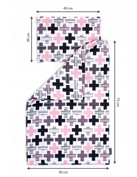 Ten wyjątkowy zestaw zawiera pościel z wypełnieniem oraz płaską poduszkę. Kołderka o rozmiarze 50 cm x 75 cm zapewnia ciepłe i przytulne otulenie, a płaska poduszka o wymiarach 30 cm x 40 cm gwarantuje prawidłowe ułożenie głowy dziecka podczas snu.