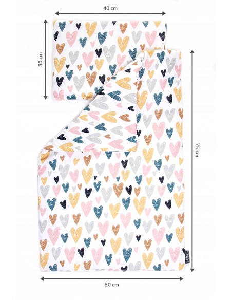 Ten wyjątkowy zestaw zawiera pościel z wypełnieniem oraz płaską poduszkę. Kołderka o rozmiarze 50 cm x 75 cm zapewnia ciepłe i przytulne otulenie, a płaska poduszka o wymiarach 30 cm x 40 cm gwarantuje prawidłowe ułożenie głowy dziecka podczas snu.