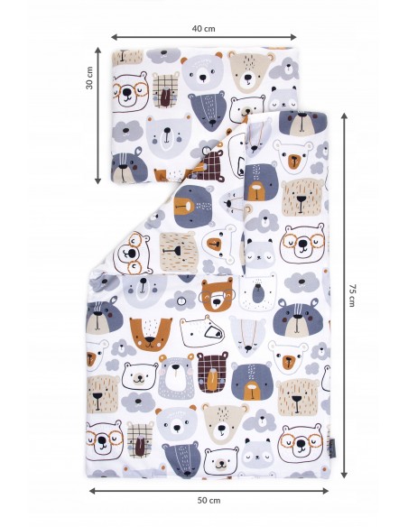 Ten wyjątkowy zestaw zawiera pościel z wypełnieniem oraz płaską poduszkę. Kołderka o rozmiarze 50 cm x 75 cm zapewnia ciepłe i przytulne otulenie, a płaska poduszka o wymiarach 30 cm x 40 cm gwarantuje prawidłowe ułożenie głowy dziecka podczas snu.