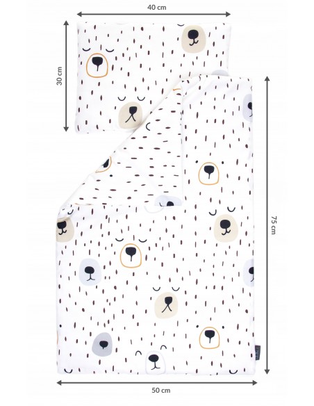 Ten wyjątkowy zestaw zawiera pościel z wypełnieniem oraz płaską poduszkę. Kołderka o rozmiarze 50 cm x 75 cm zapewnia ciepłe i przytulne otulenie, a płaska poduszka o wymiarach 30 cm x 40 cm gwarantuje prawidłowe ułożenie głowy dziecka podczas snu.