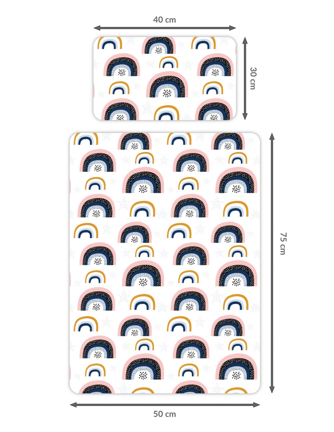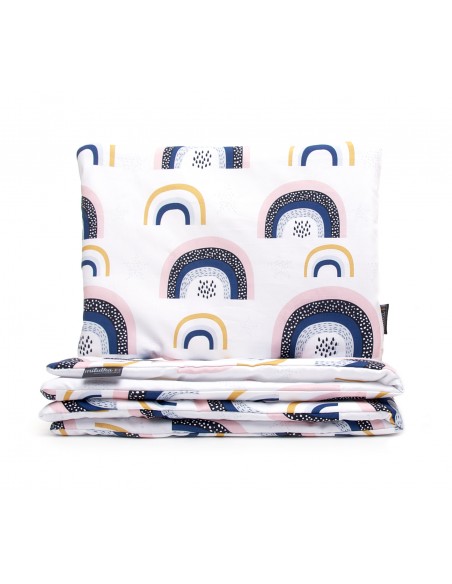 Ten wyjątkowy zestaw zawiera pościel z wypełnieniem oraz płaską poduszkę. Kołderka o rozmiarze 50 cm x 75 cm zapewnia ciepłe i przytulne otulenie, a płaska poduszka o wymiarach 30 cm x 40 cm gwarantuje prawidłowe ułożenie głowy dziecka podczas snu.