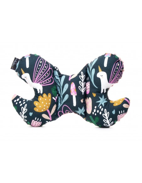 Ta wyjątkowa poduszka-zagłówek w kształcie motyla została specjalnie wyprofilowana, aby chronić delikatną główkę maluszka podczas podróży wózkiem lub samochodem. Jej idealny kształt doskonale dopasowuje się do główki dziecka, zapewniając spokojny sen i maksymalny komfort w czasie jazdy. Antyalergiczne silikonowe wypełnienie jest w pełni bezpieczne dla dziecka, a wykorzystane materiały posiadają certyfikat OEKO-TEX 100, co gwarantuje bezpieczeństwo i higienę użytkowania.