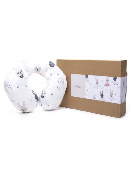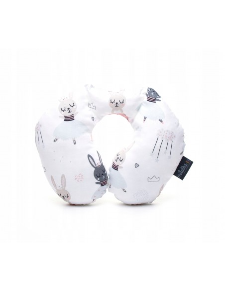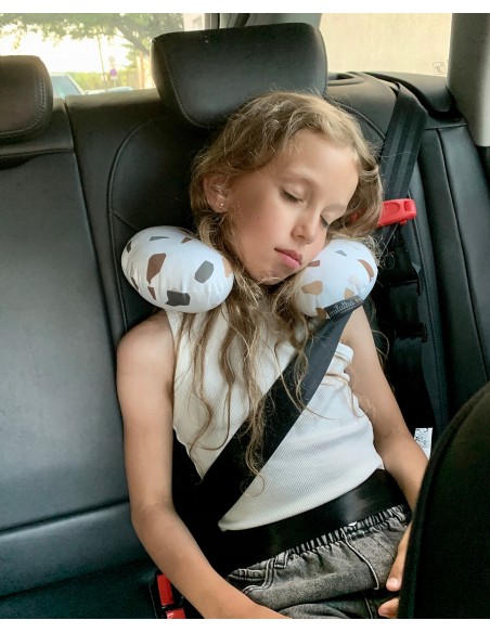 Specjalne przeszycia zapewniają właściwą pozycję głowy dziecka podczas podróży, gwarantując tym samym pełen komfort i bezpieczeństwo. Poduszka jest wykonana z najwyższej jakości bawełny, która posiada certyfikat OEKO-TEX 100, co oznacza, że materiał oraz nadruk są bezpieczne dla dzieci.