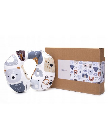 Specjalne przeszycia zapewniają właściwą pozycję głowy dziecka podczas podróży, gwarantując tym samym pełen komfort i bezpieczeństwo. Poduszka jest wykonana z najwyższej jakości bawełny, która posiada certyfikat OEKO-TEX 100, co oznacza, że materiał oraz nadruk są bezpieczne dla dzieci.