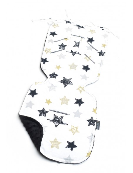 Wkładka posiada otwory i wcięcia, dzięki którym pasuje do większości wózków spacerowych. Posiada również miejsca na 5-punktowe pasy bezpieczeństwa, zapewniając maksymalne zabezpieczenie dla Twojego dziecka.