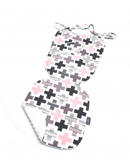 Wkładka posiada otwory i wcięcia, dzięki którym pasuje do większości wózków spacerowych. Posiada również miejsca na 5-punktowe pasy bezpieczeństwa, zapewniając maksymalne zabezpieczenie dla Twojego dziecka.
